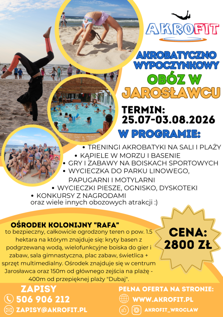 Obóz sportowo-wypoczynkowy JAROSŁAWIEC 2026r.